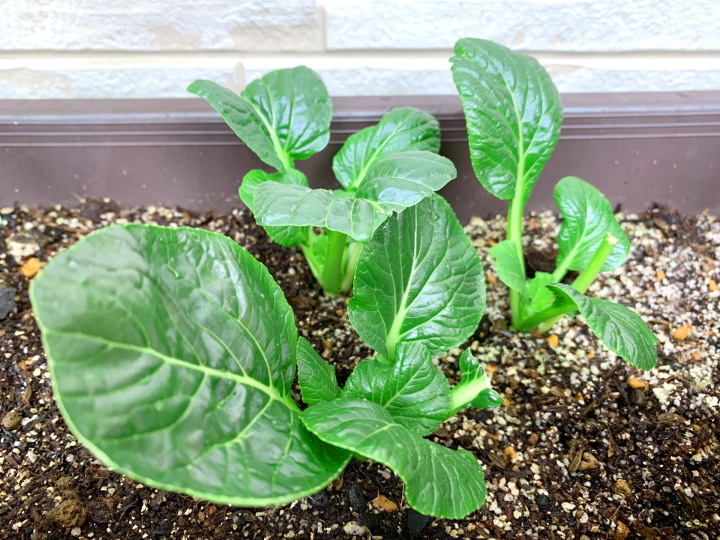 - また、一度に種を蒔かずに何回かに分けて種を蒔いた方が、収穫の時期がずれるため、常に新鮮な小松菜を食べることができます。